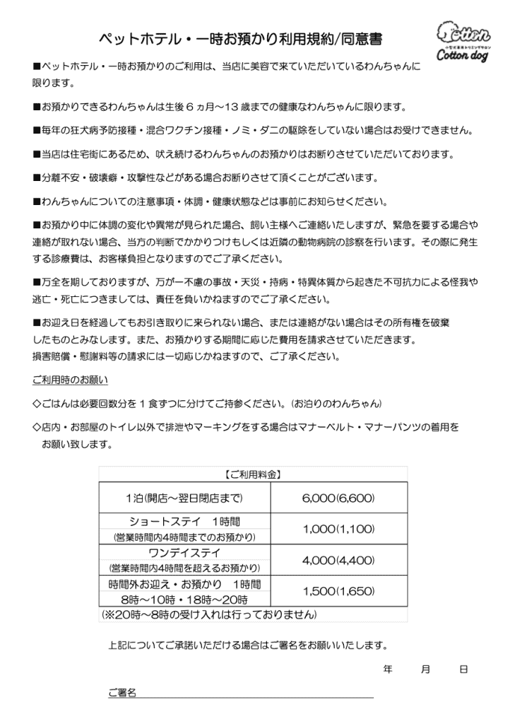 ■ホテル・一時預かりのご利用は、美容に来て頂いているワンちゃんのみとなっております